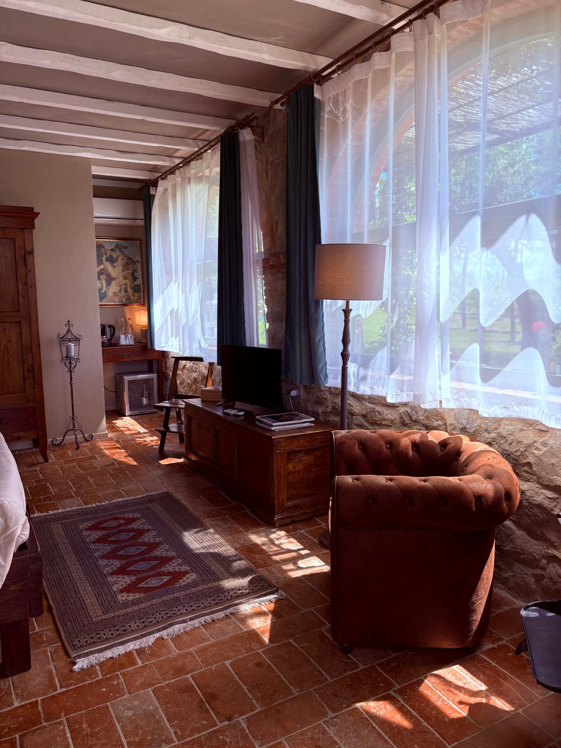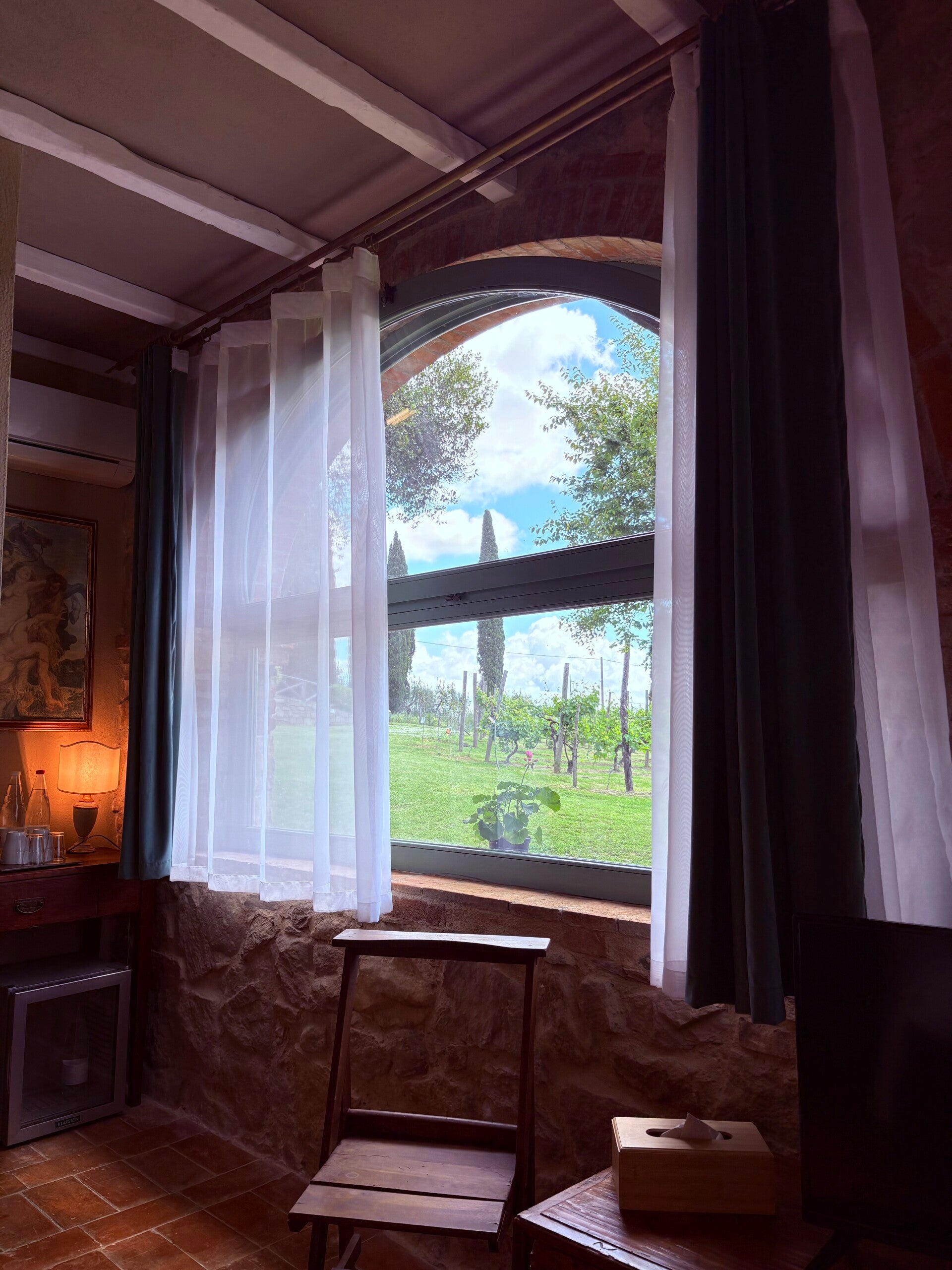 It's absolute Tuscan paradise surrounded by it's own olive grove and vineyard with beautiful views on the typical Tuscan scenery. Francesco and Concetta are lovely people willing to help you. We were lucky enough to be invited on a birthday celebration with them and it was absolutely amazing authentic experience. Farmhouse decor is all over the place, very thoughtfully done. There is plenty of spaces outside where to sit, lay down,every room has it's own space as well.We are definitely coming Back.💜