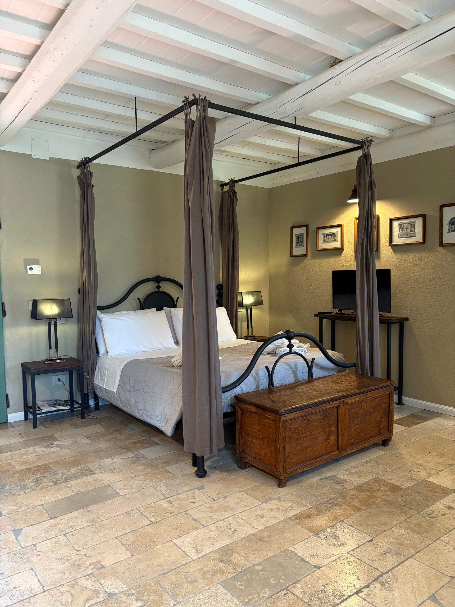 It's absolute Tuscan paradise surrounded by it's own olive grove and vineyard with beautiful views on the typical Tuscan scenery. Francesco and Concetta are lovely people willing to help you. We were lucky enough to be invited on a birthday celebration with them and it was absolutely amazing authentic experience. Farmhouse decor is all over the place, very thoughtfully done. There is plenty of spaces outside where to sit, lay down,every room has it's own space as well.We are definitely coming Back.💜